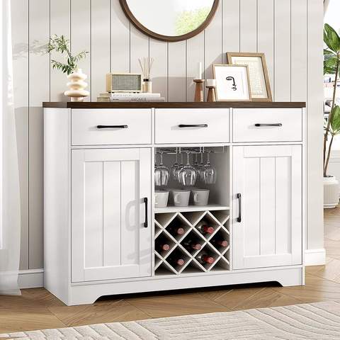 Nova Chegada Artesanal Vintage Aparador Buffet Gabinete De Armazenamento Multifuncional Gavetas Wine Rack Coffee Bar para Cozinha Jantar