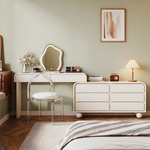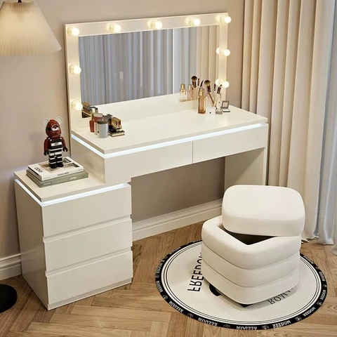 Personalização Estilo Moderno Quarto Móveis Led Light White Color Storage Dresser Maquiagem Vanity Dressing Table para Quarto